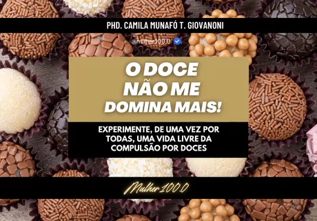 Um E-book incrível da Dra. Camila - O Doce não me domina mais - com dicas infalíveis para você que tem compulsão por doces se livrar de uma vez por todas dessa situação.