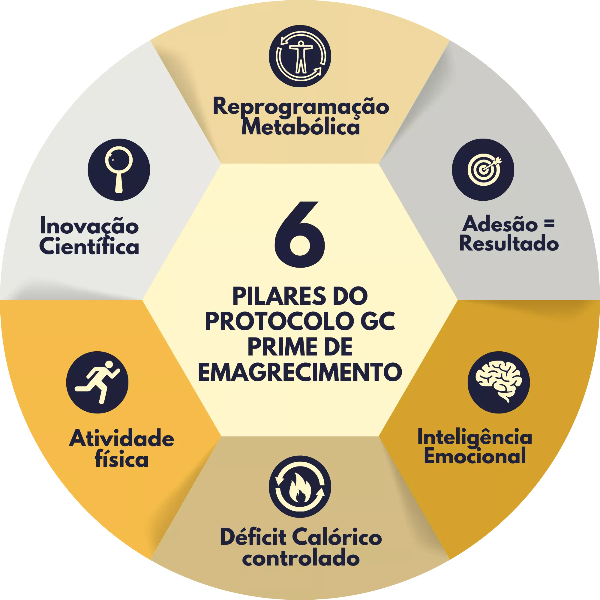 O Protocolo GC Prime de Emagrecimento é pautado em 6 pilares:
