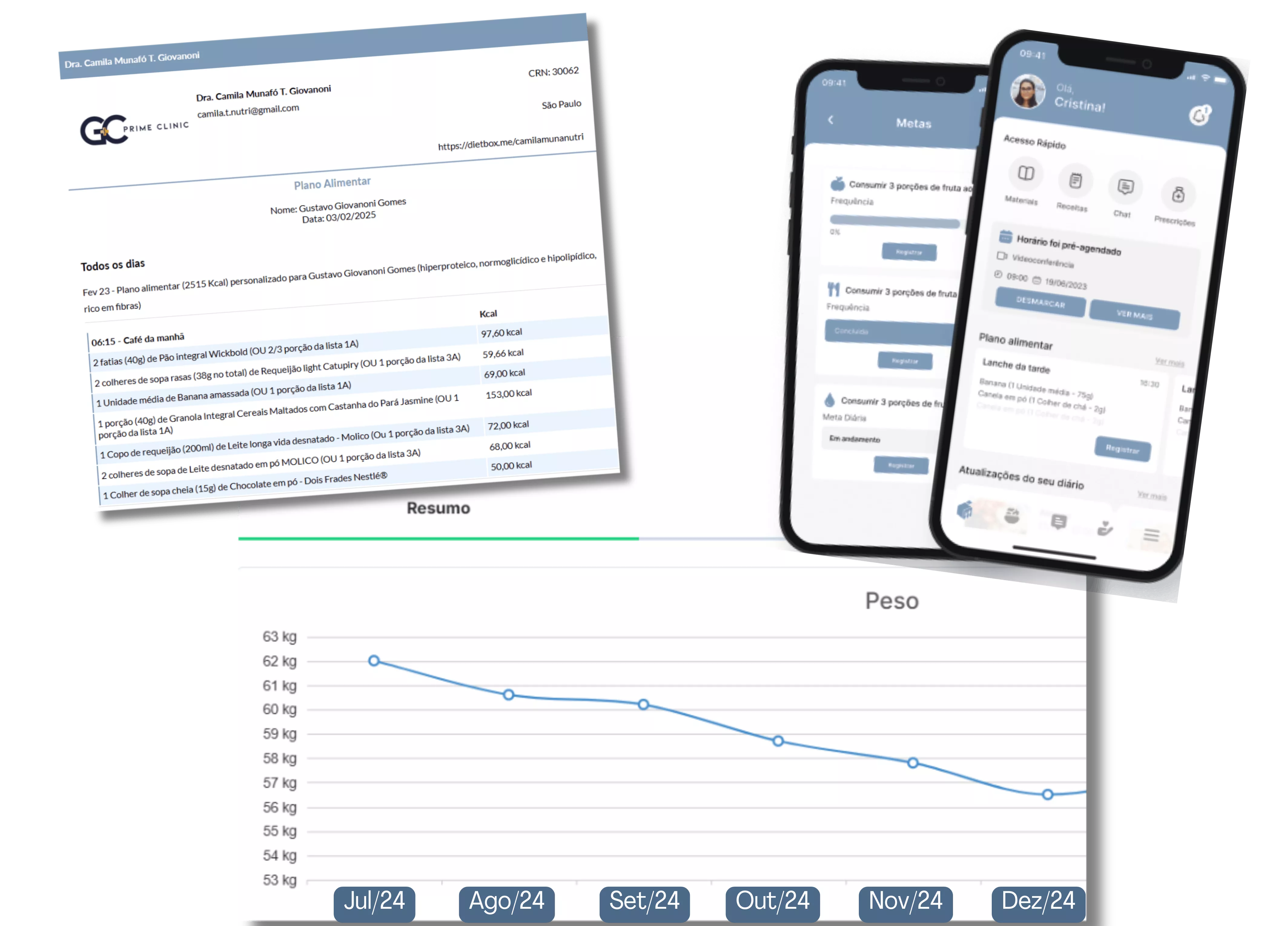 - 12 consultas nutricionais (1ª consulta 60 minutos e demais 40 minutos)
